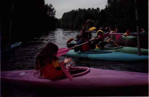 En fin de séance, nous rentrons à la base, nous vidons les kayaks, nous les rangeons ainsi que les gilets de sauvetage et les pagaies.